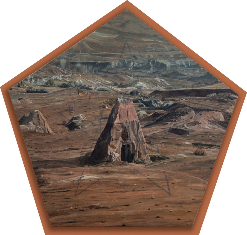Alex Coma created physical forms through paintings, sculptures and a video piece to represent his mental visualizations, each artwork inspired by the effects of this ritual. As taught by ancient traditions such as the “Golden Dawn”, hidden language of archangels, sigils, and elemental symbols, such as air (for the intellect) or fire (will power) are also integrated in the artworks.