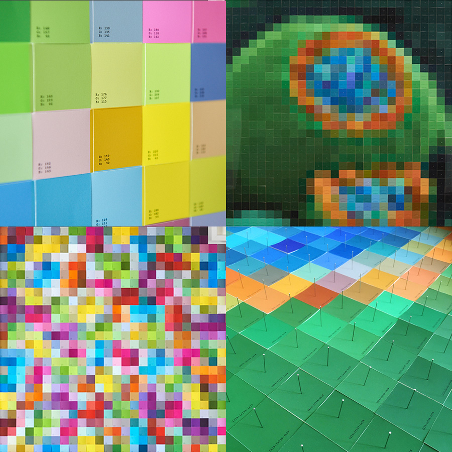 Play, Paint by Numbers… and Learn se présentent sous la forme de trois séries distinctes élaborant une seule thématique : extraire du monde virtuel chaque pixel d’une image pour la reconstruire à une échelle différente, de manière à mettre en évidence sa matrice, et ainsi lui redonner une existence physique tridimensionnelle.