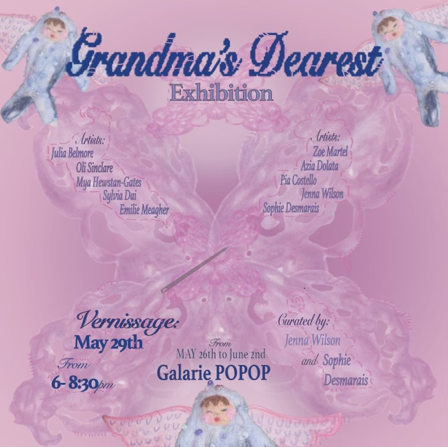 Artistes exposant.es: Julia Belmore, Oli Sinclare, Mya Hewstan-Gates, Sylvia Dai, Emilie Meagher, Zoe Martel, Azia Dolata, Pia Castello, Jenna Wilson, Sophie Desmarais
