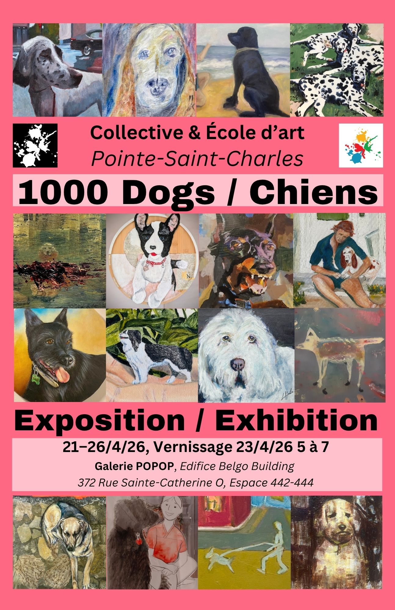 Dave est la star de cette exposition, en partie parce qu’il est un excellent peintre de chiens. Toutefois, les étudiants et les membres de l’école d’art/collectif de Pointe-Saint-Charles avons relevé avec beaucoup d’enthousiasme le défi que représente ce projet.
